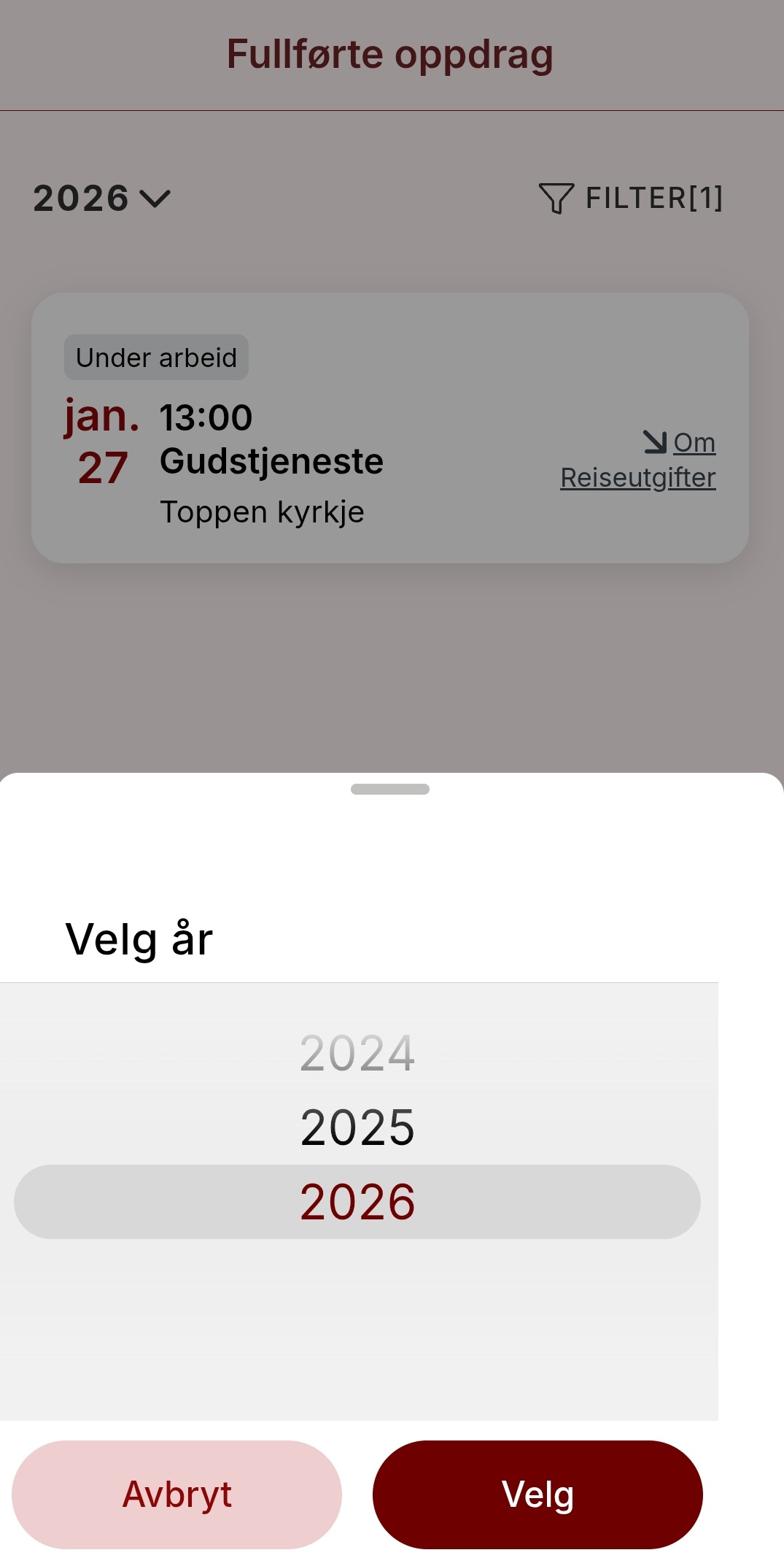 Klikk på årstallet for å velge et annet år, og bekreft valget med å klikke 'Valg'.