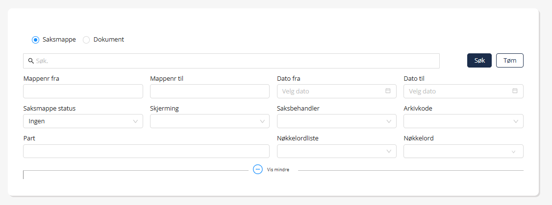 Velg om du vil søke på Saksmapper eller Dokumenter.