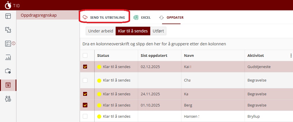 - Sendt til utbetaling - oppdraget er også godkjent av lønn og sendt til utbetaling.