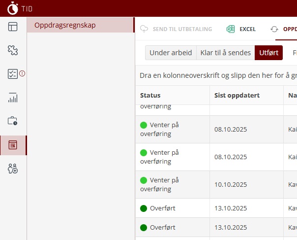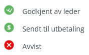 - Godkjent av leder - oppdraget er godkjent av leder og sendt videre til lønnssystemet.