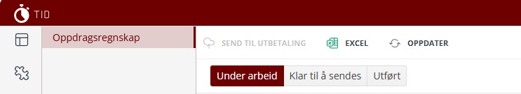Oppdrag i lønnsmodulen deles i 3 statuser: "Under arbeid", "Klar til å sendes" og "Utført":